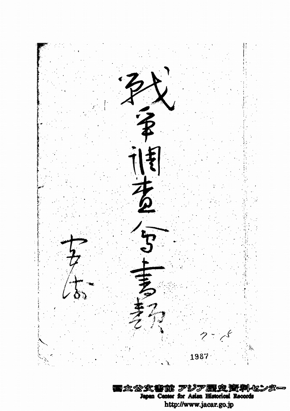 Image 1. Miyazaki Shuichi “Documents Related to the Survey Association of the War”