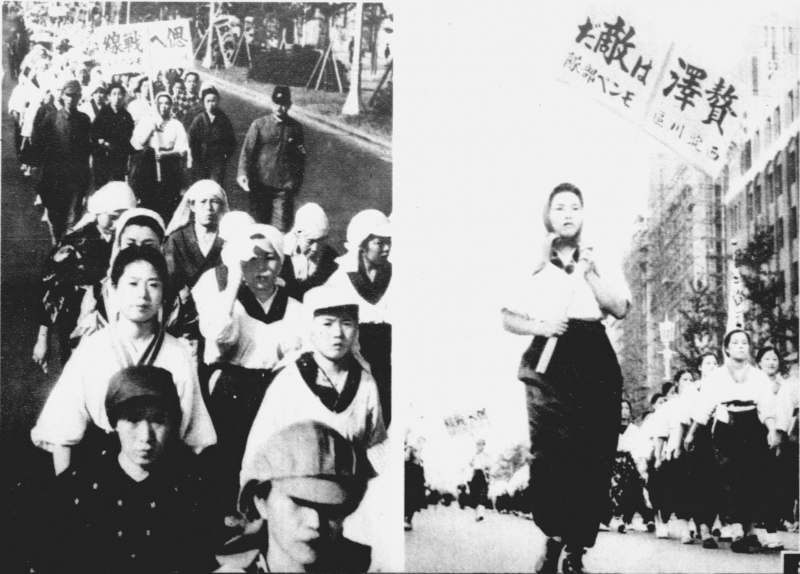 画像2 「贅沢は敵だ」のスローガンを掲げるモンペ部隊の行進