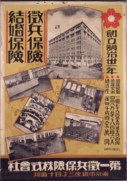 画像1 1925(大正14)年の「結婚保険」の宣伝ポスター(江戸東京博物館蔵)。子女の結婚に際して資金を受け取れる「結婚保険」が存在するほど、結婚はお金のかかるものでした。そこで「人口政策確立要綱」には、結婚費用の軽減と結婚資金貸付制度の創設が盛り込まれています。