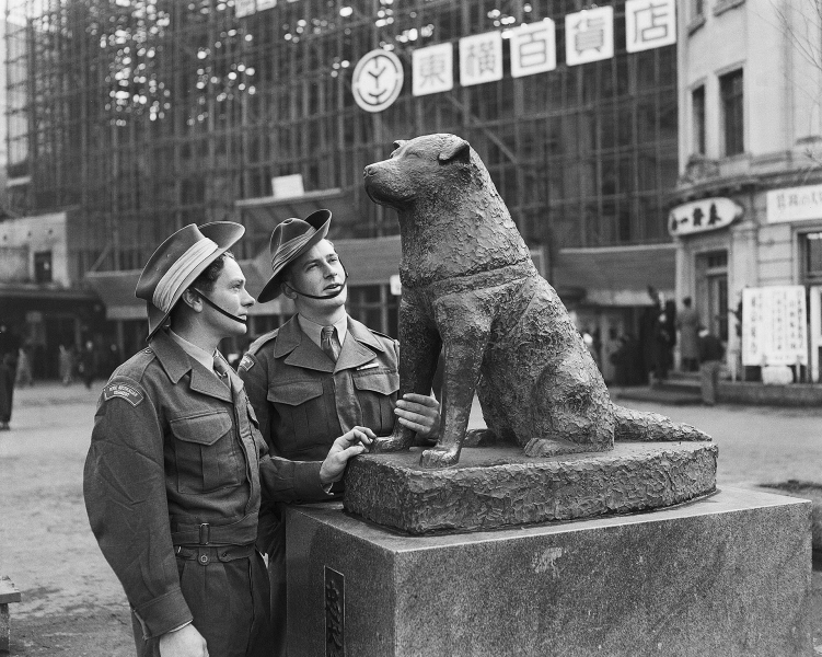 戦後、ハチ公像の復活を望む声は多く、国内だけでなく、海外にもよく知られたハチ公のエピソードのおかげでGHQの愛犬家のサポートもあり、初代ハチ公像を制作した安藤照氏の子息、士氏によって作りなおされ、1948(昭和23)年8月に同じ渋谷駅前に再建されました(画像2)。