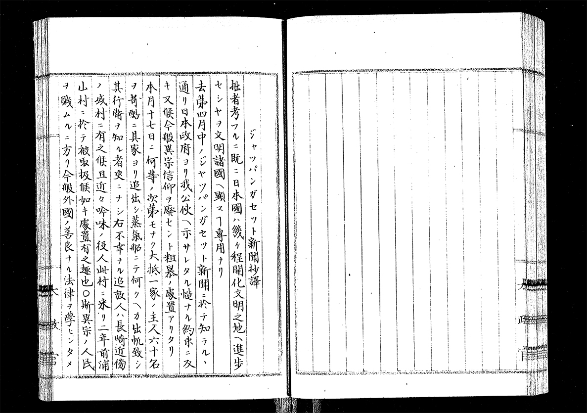 The Christianity issue was also a pending problem for the "Traveling Government". In particular, resistance from foreign countries over the control of Christianity influenced negotiations for treaty revisions. The government and mission personnel had to stand by their Christianity measures while being conscious of the reactions of foreign countries. To control Christianity in Nagasaki and Imari prefectures, the government, for fear of hindering the negotiations of the mission, required confirmation of details to the prefectures. On receipt of the reports, the mission told government officials to ask local government officials to deal with Christianity with extreme care. The difficulties faced by the government handling Christianity were apparent in the correspondence between the prefectures, the Ministry of Foreign Affairs, and the Dajokan (Council of State) and an abridged translation of a foreign newspaper recorded in "Official correspondences with Home Office, including documents attached to official correspondences.” (Image 3).
