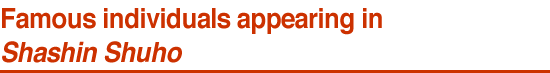Just as the title of the journal suggests, each issue of Shashin Shuho contains a number of photographs (shashin). The subjects pictured in these photographs include well-known individuals of the time, such as prominent politicians. In addition, some of the individuals who took these photos would go on to enjoy successful careers as photographers and journalists. This section will introduce famous individuals who appeared in Shashin Shuho together with related documents.