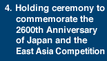 Shashin Shuho reported the progress of preparations for the ceremony and actual events on the ceremony day. For more details, see the “Japan celebrates its 2600th anniversary” on November 10, 1940 in the chronological table. The ceremony was held over the two days on November 10 and 11, with a total of 55,000 people taking part. In addition to the ceremony, a number of related events were also planned, including the East Asia Competition. A decision was made to hold this event in the suburbs of Tokyo from June 6 to June 9, 1938 ahead of this ceremony.