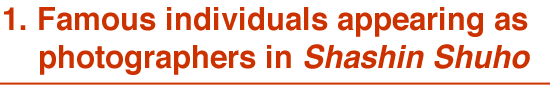 Many of the photographs that appear in Shashin Shuho bear the names of the press sections of the government-related organizations or the individuals who shot the pictures. Some of these individuals would go on to become famous photographers and journalists in their own right. Here we will introduce photographs taken by Ihei Kimura, Ken Domon, and Soichi Oya, along with related documents. |