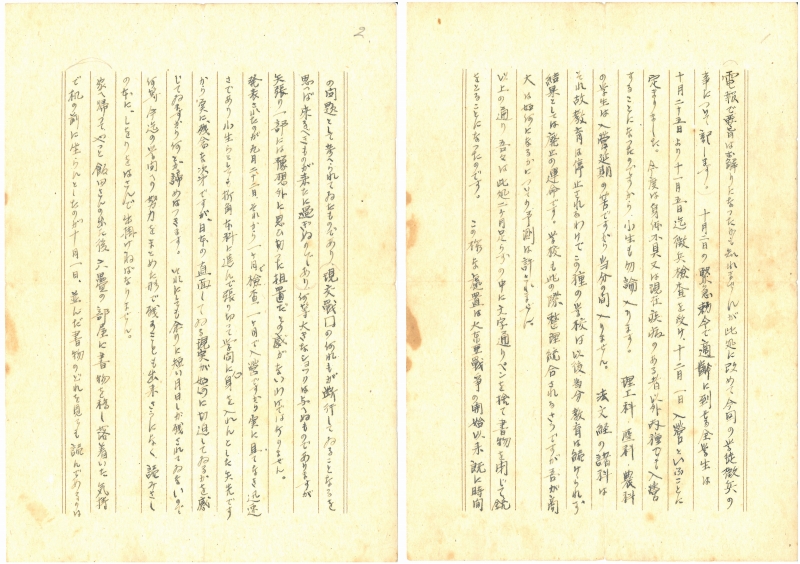 戦前の大学では、正規の修業年限は3年間でしたが、1941(昭和16)年度には修業年限が3か月間短縮され、1942(昭和17)年3月卒業予定の者は1941(昭和16)年12月に繰り上げ卒業させられることになったのです。