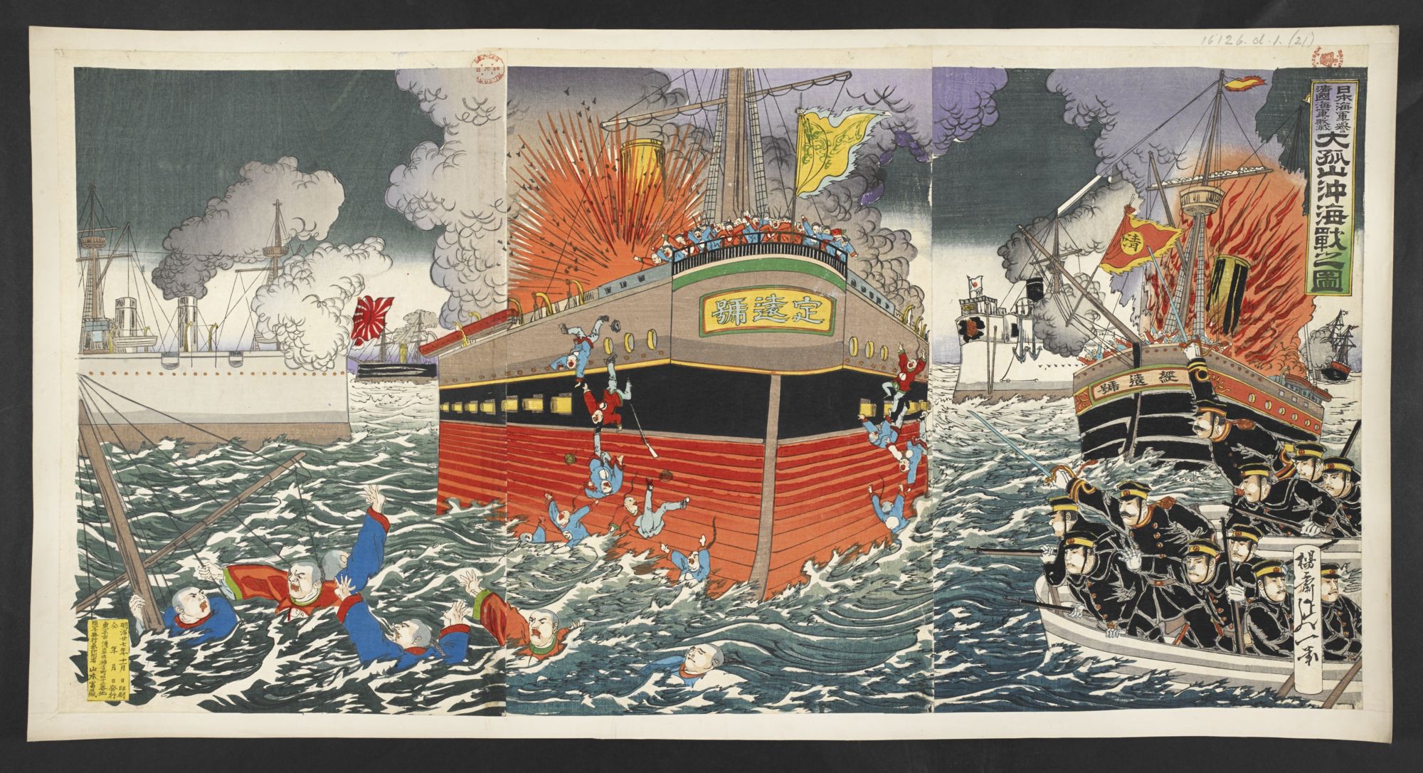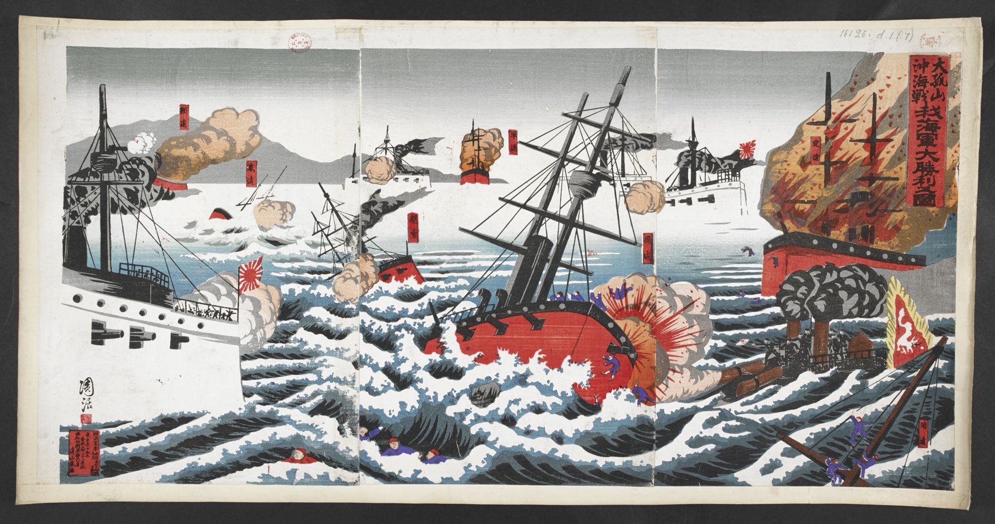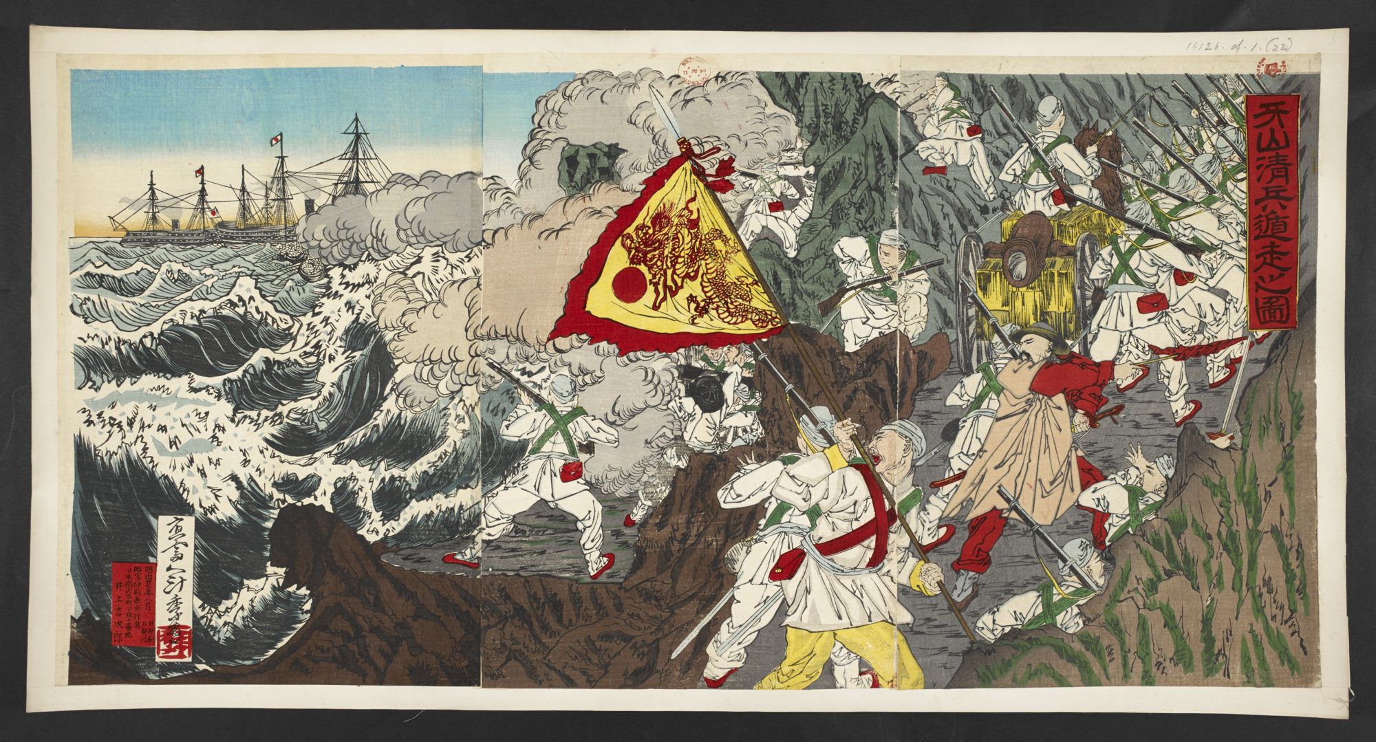 - タイトル: 大孤山沖海戦之図 日本海軍誉清国海軍敗滅