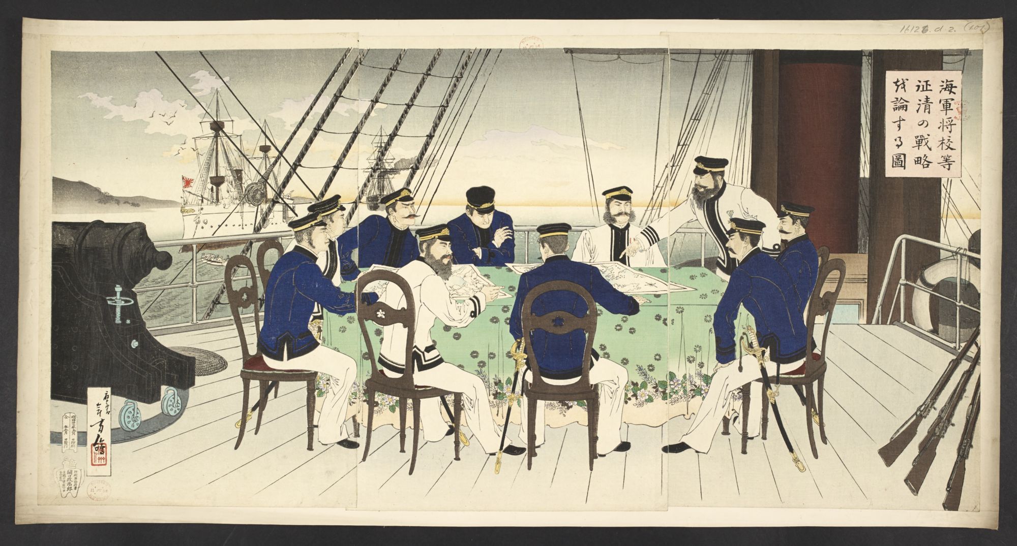 - タイトル: 海軍将校等征清の戦略議論する図