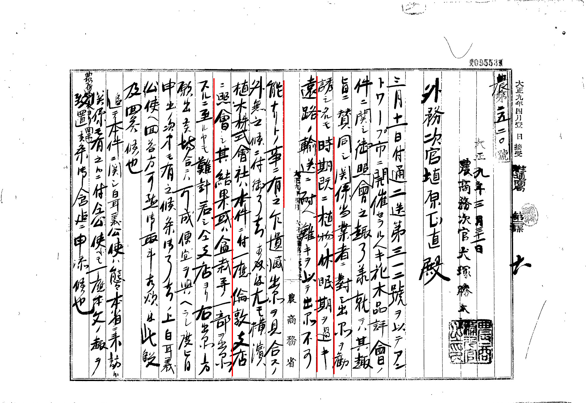 その後もさまざまな展覧会の場で日本のユリが展示されました。たとえば、大正9年(1920年)にベルギーのアントワープで開かれた国際花木展覧会では、展覧会委員長から会場内の日本庭園に植えるためにユリの球根を送って欲しいとの手紙が送られています (3)。ただ、この時は既にユリの休眠期を過ぎて遠路の輸送に耐えられないという理由で出品を見合わせ、代わりに横浜植木株式会社のロンドン支店から盆栽を出品する旨が回答されています (4)。日本の盆栽も、当時欧米で愛好されていた日本産物品のひとつでした。