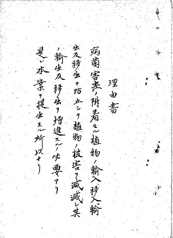 ユリ根は生きた植物であるため、輸出入に際しては、まわりの土を含めて病菌や害虫が付いていないか検査検疫する必要がありました。日本政府も、その検査検疫の制度を整備していきます。大正3年(1914年)には輸出入植物取締法が公布され、植物検査所が新設されています。その法案の理由書には「病菌害虫の附着せる植物の輸入、移入、輸出及移出を防止して植物の被害を減滅し其の輸出及移出を増進するの必要あり」と書かれていて、検査をきちんと行い、輸出を促進する意図があったことがうかがわれます (10)。