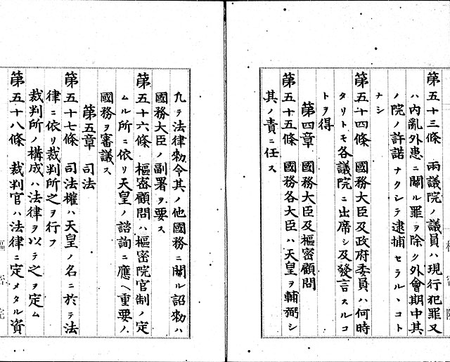 欧米式の憲法には、国民の人権は守られなければならないことと、そのための国家機関の在り方が書かれていますが、大日本帝国憲法では、天皇が国の政治の在り方を決めることとされており、国民の人権は天皇から与えられたものとされていました((2) 大日本帝国憲法前文、1条。)