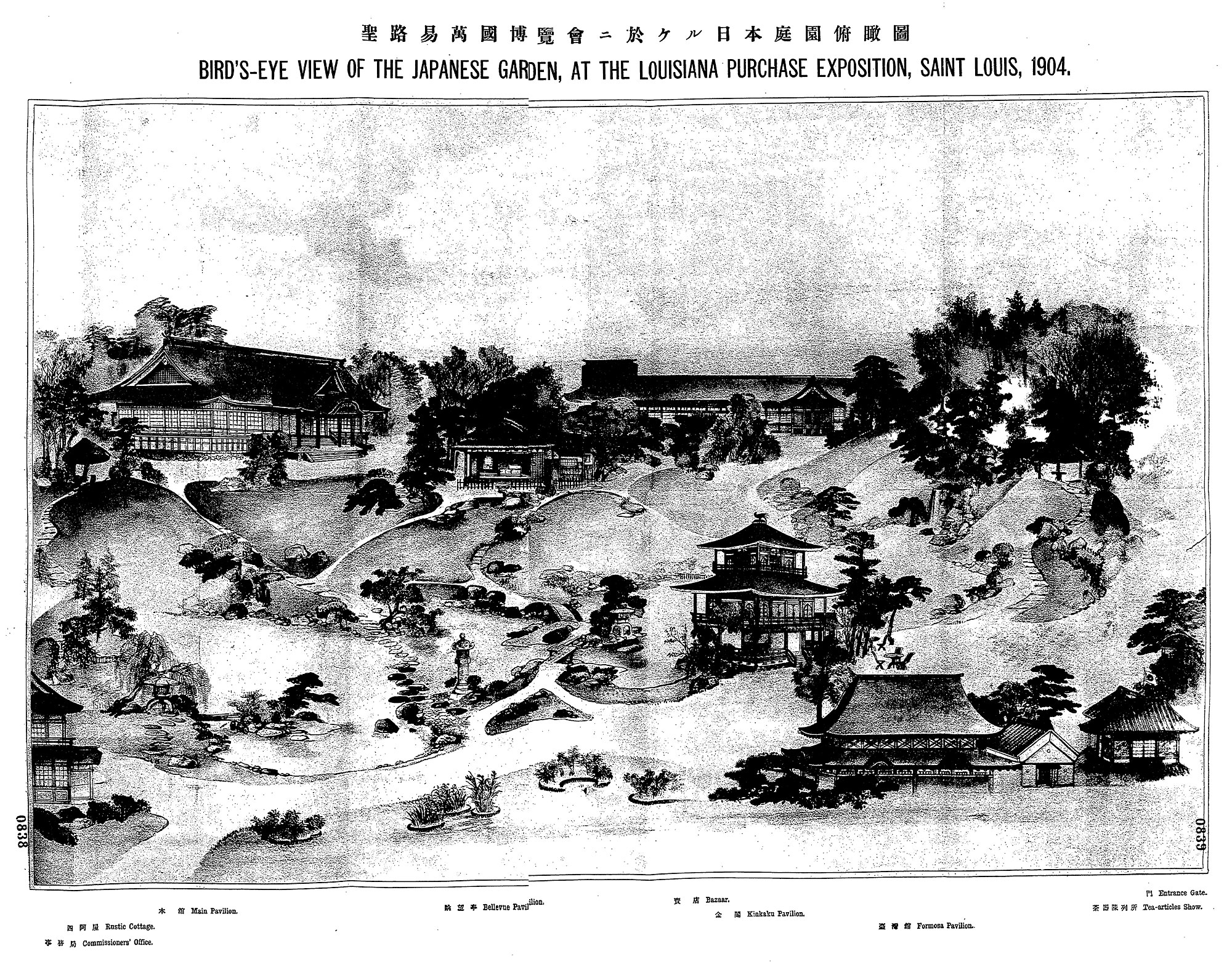 1904年(明治37年)、アメリカのセントルイスで、ルイジアナ州の買収100周年を記念する万国博覧会が開かれました。この万博に参加した日本は、会場に日本庭園を造りました。アジ歴では、前年の1903年(明治36年)の準備段階で、「臨時万国博覧会事務局」が陸軍に送った資料から、この日本庭園の様子を知ることができます。