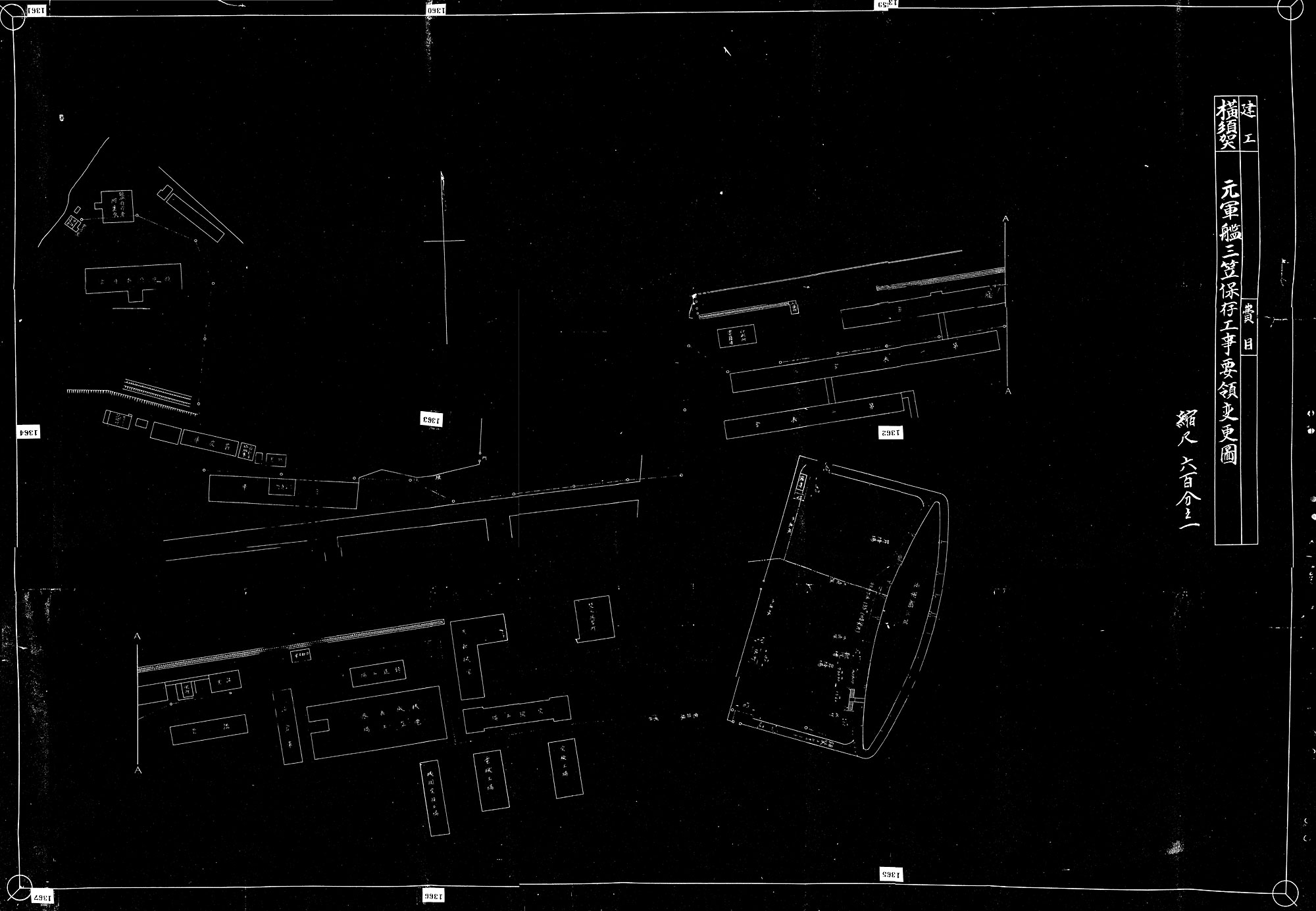 この結果、大正14年(1925年)1月には、実際に戦闘の役には立たない状態にすることを条件として、三笠の記念艦としての保存が決定されました。このために、兵器を使用できないようにするなどの整備がなされ、艦体を横須賀の岸壁に固定するための大規模な工事が行われました。 (8) は、三笠を固定する工事の見取り図です。保存工事は大正15年(1926年)11月11日に完了し、翌日に保存式が執り行われました。