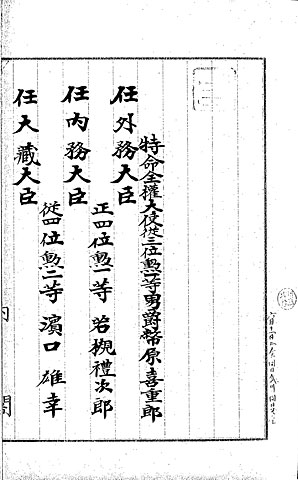 大正13年(1924年)6月、第一次加藤高明内閣が成立すると、幣原は外務大臣に就任しました (5)。この後、第2次加藤高明内閣、第1次若槻礼次郎内閣までの約2年10ヶ月、さらに昭和4年(1929年)7月に成立した浜口雄幸内閣での復帰から、第2次若槻礼次郎内閣までの約2年5ヶ月、外務大臣としての職を担いました。