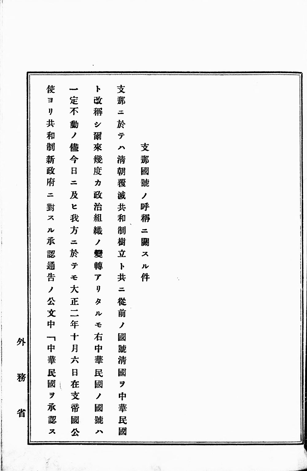 また、当時の日本は、大正2年(1913)6月の閣議決定に基づいて、中国を「支那」と呼称していました (9)。しかし中国側はこれを好まず「中華民国」の呼称を用いるよう求めていました。これに配慮する形で浜口内閣は、昭和5年(1930年)10月、原則として「中華民国」の呼称を使用することを閣議決定しました( (10)、 (11)、 (12)、 (13) )。