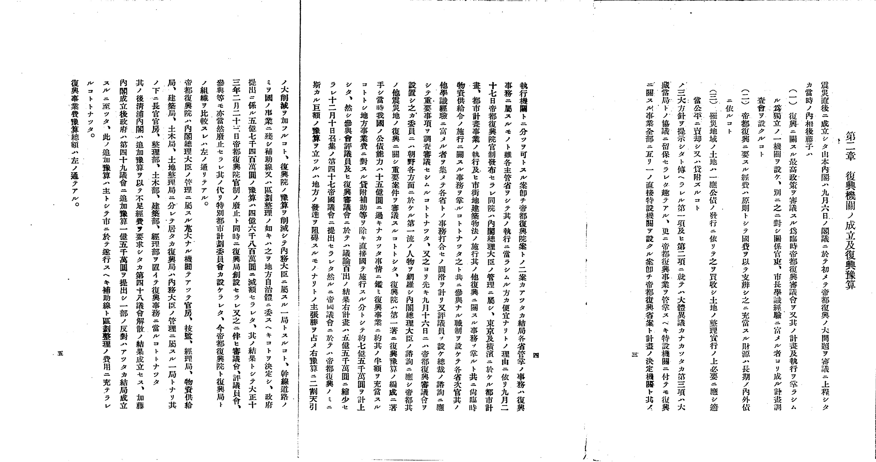 そして、議会のもうひとつの結論として、帝都復興院が大正13年2月に廃止されることになりました。つまり、復興計画が定まった時点で、復興事業を内閣総理大臣が直接管理するという体制は停止されたのです。代わって、計画実行を担うため、内務省のひとつの部局として「復興局」が開設されました(7)。