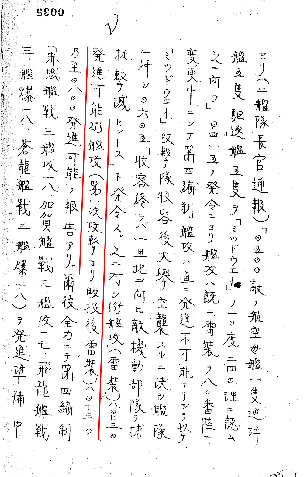 このジレンマに直面した司令部は、後者の道を選択します。6時5分に艦隊に対し攻撃隊の収容が終われば、「敵機動部隊ヲ捕捉撃滅セントス」と命令しました。さらに攻撃隊航空機も兵装転換を終え、7時半から8時頃には発進可能であるとの報告がなされていました (6)。