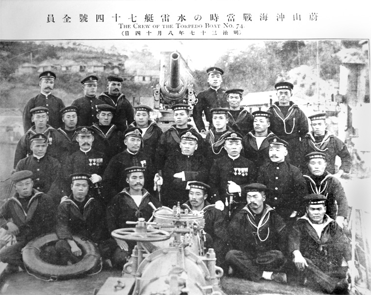 ▲「蔚山沖海戦当時の水雷艇七十四号全員(明治三十七年八月十四日)」 (財団法人三笠保存会所蔵)