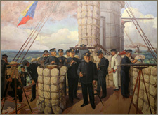 昭和4年(1929年)付のこの資料は、朝鮮半島南部の鎮海湾のそばに建設された「日本海海戦記念塔」に関する文書です。この中には「紀念塔(鉄骨鉄筋コンクリート)」の完成予想図があり、その高さが「百捨弐尺」(約34メートル)、建築費用が「七万円」(2008年度の約5,000万円に相当)と見積もられていた事が記されています(原文旧字、105画像目)。