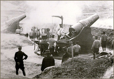 ▲王家甸南西くぼ地にある28センチ榴弾砲の試射 (防衛省防衛研究所所蔵)