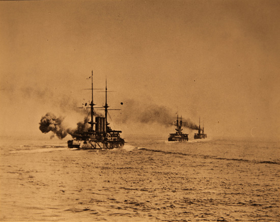 黄海海戦を経て、明治37年(1904年)末に旅順艦隊が壊滅し、明治38年(1905年)1月1日に旅順要塞が陥落すると、開戦当初から日本艦隊の主要な目標であった旅順攻撃は終息を迎え、海での戦いの焦点は、明治37年(1904年)10月半ばにバルト海沿岸のリバウ軍港を出撃して日本を目指していたロシア海軍バルチック艦隊を、日本海軍連合艦隊がどのように迎え撃つかという1点に絞り込まれていました。対馬海峡における三笠の訓練は、来たるべきバルチック艦隊との戦いに備えたものでした。