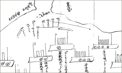 【資料1】の19画像目は、2月16日付で第二艦隊司令長官上村彦之丞から連合艦隊司令長官東郷平八郎に提出された第二戦隊の戦闘詳報に付されている、艦隊の航跡図です。