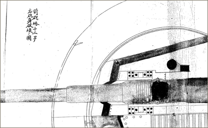 【資料21】の37~40画像目は、戦艦「三笠」の戦時日誌に付された、「前砲塔十二尹(インチ)右砲身破壊ノ図」と題された図で、明治38年5月27日から28日にかけての日本海海戦の際に、ロシア軍の砲撃によって破損した戦艦「三笠」の前部12インチ砲の砲塔の様子が描かれています。80~81画像目は、「明治三十八年五月廿七.廿八日日本海々戦ニ於ケル軍艦三笠弾痕図(右舷側図)」と題された図で、日本海海戦が終了した時点での、戦艦「三笠」の破損箇所を艦体の右側(右舷)から見た様子が描かれています。 83~84画像目は、同じく左側(左舷)から見た様子を描いた図です。これらの図面でも、【資料20】の黄海海戦後のものと同じように、「貫通痕」、「炸裂痕」、「小弾片破痕」、「大弾片破痕」、「不貫通痕」、「破断動静索」が示されています。