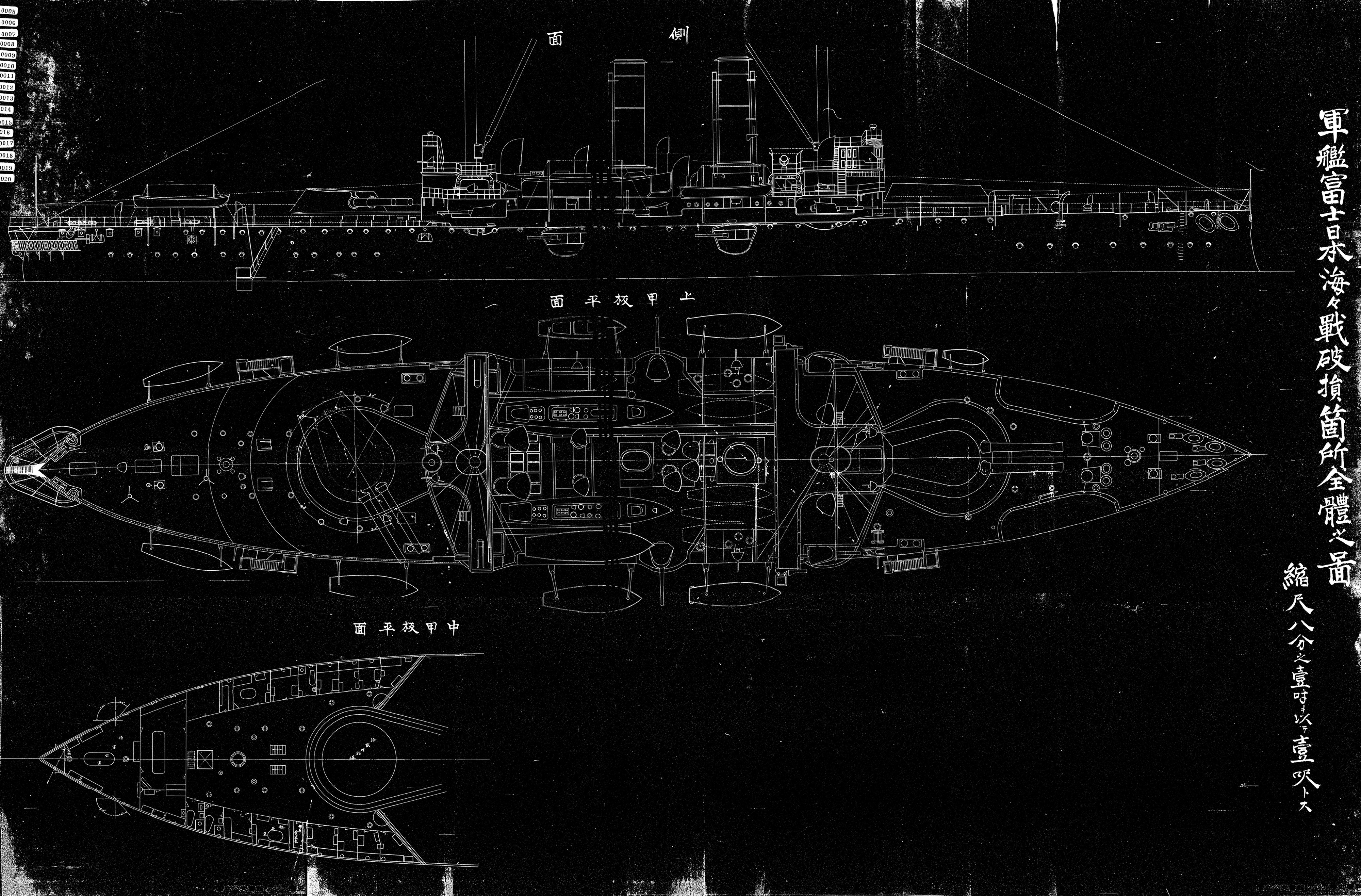 ▲【資料22】軍艦破損図(1) 3~18画像目(防衛省防衛研究所所蔵)