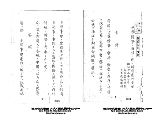 「世界情勢の推移に伴ふ時局処理要綱 昭和15年7月」(Ref. C12120200800)1~2画像目