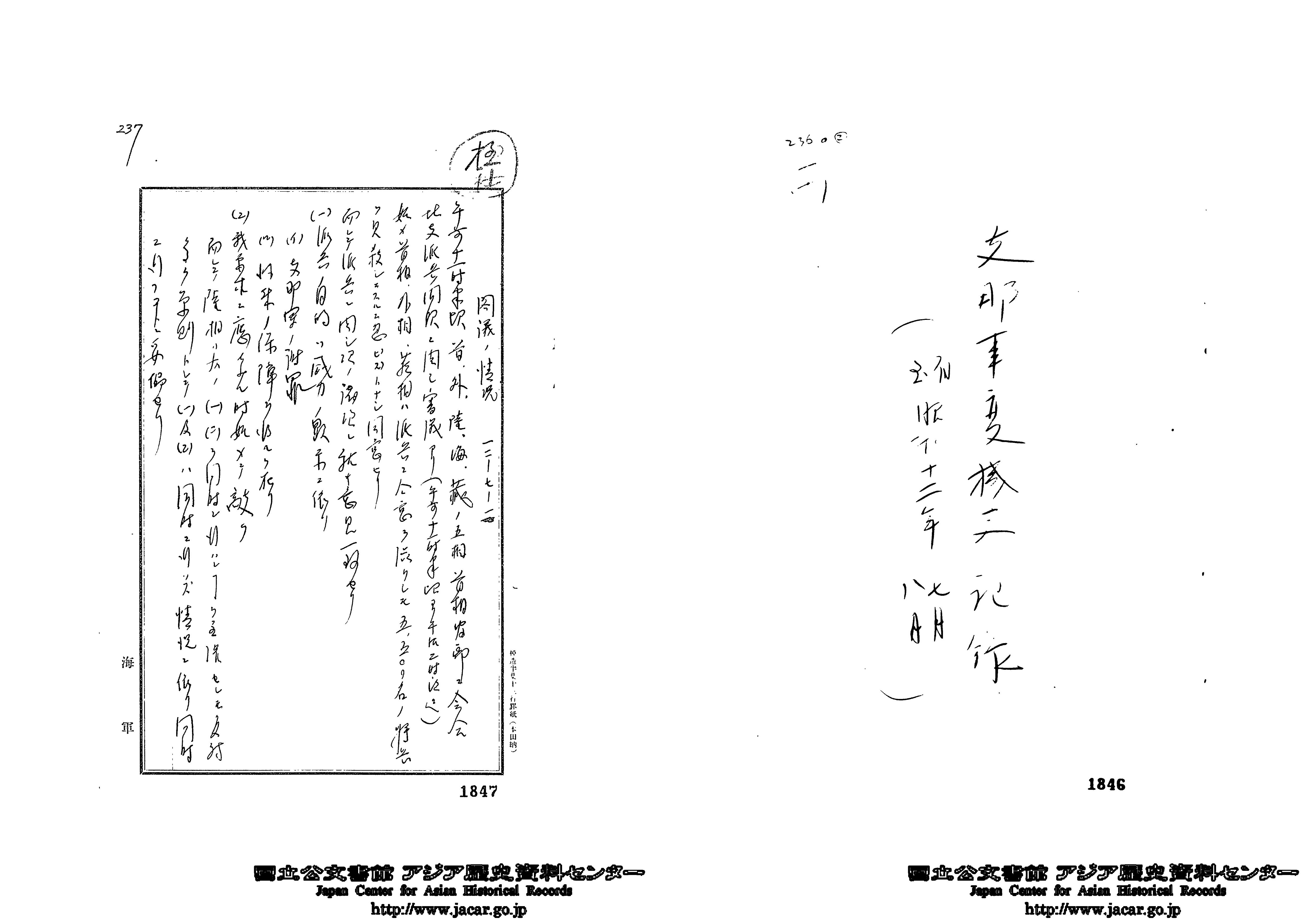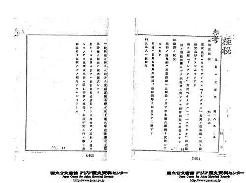 「丙 支那事変機密記録(自昭和12年7月至昭和12年8月)(1)」(Ref. C14120633300)1~2画像目