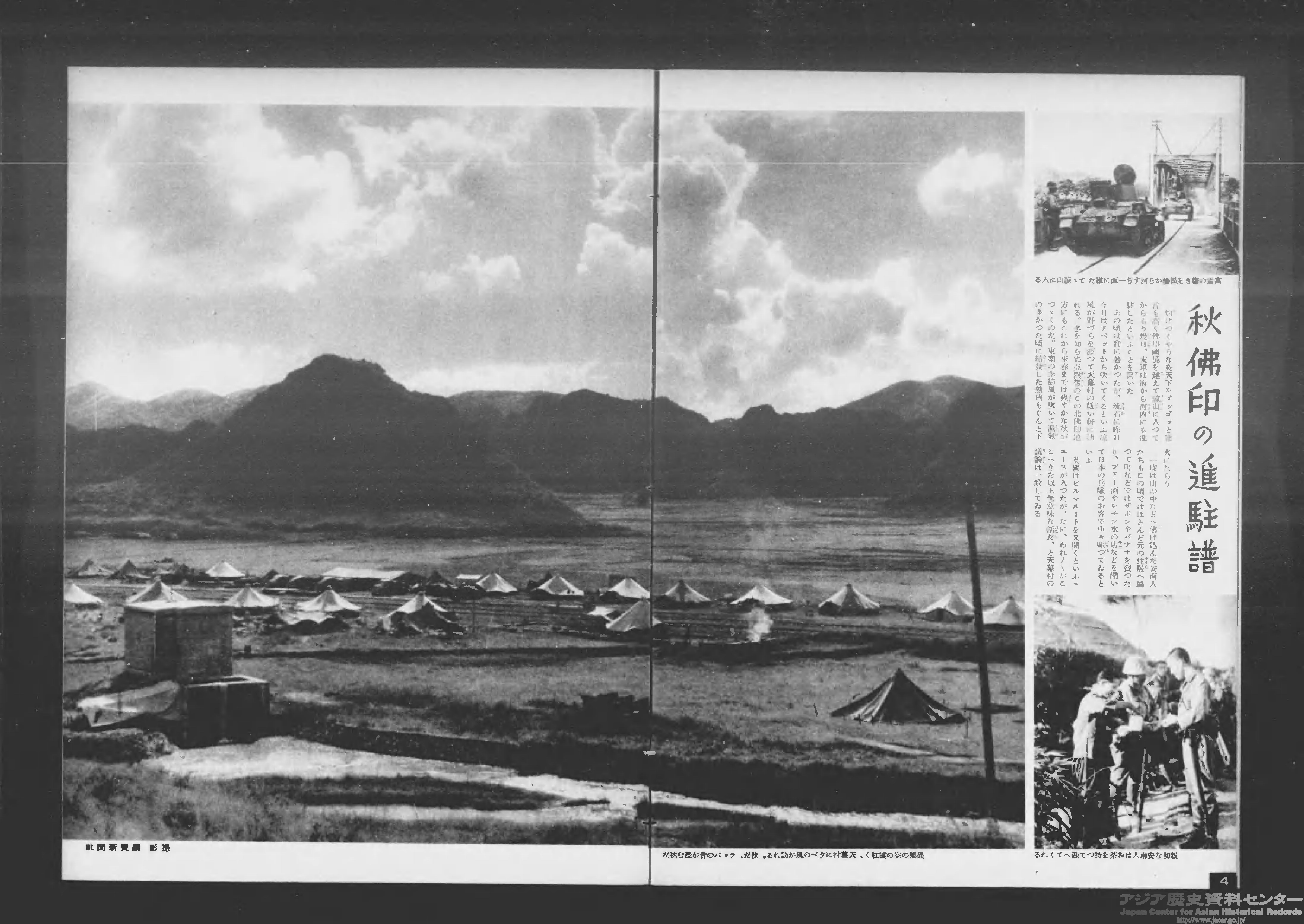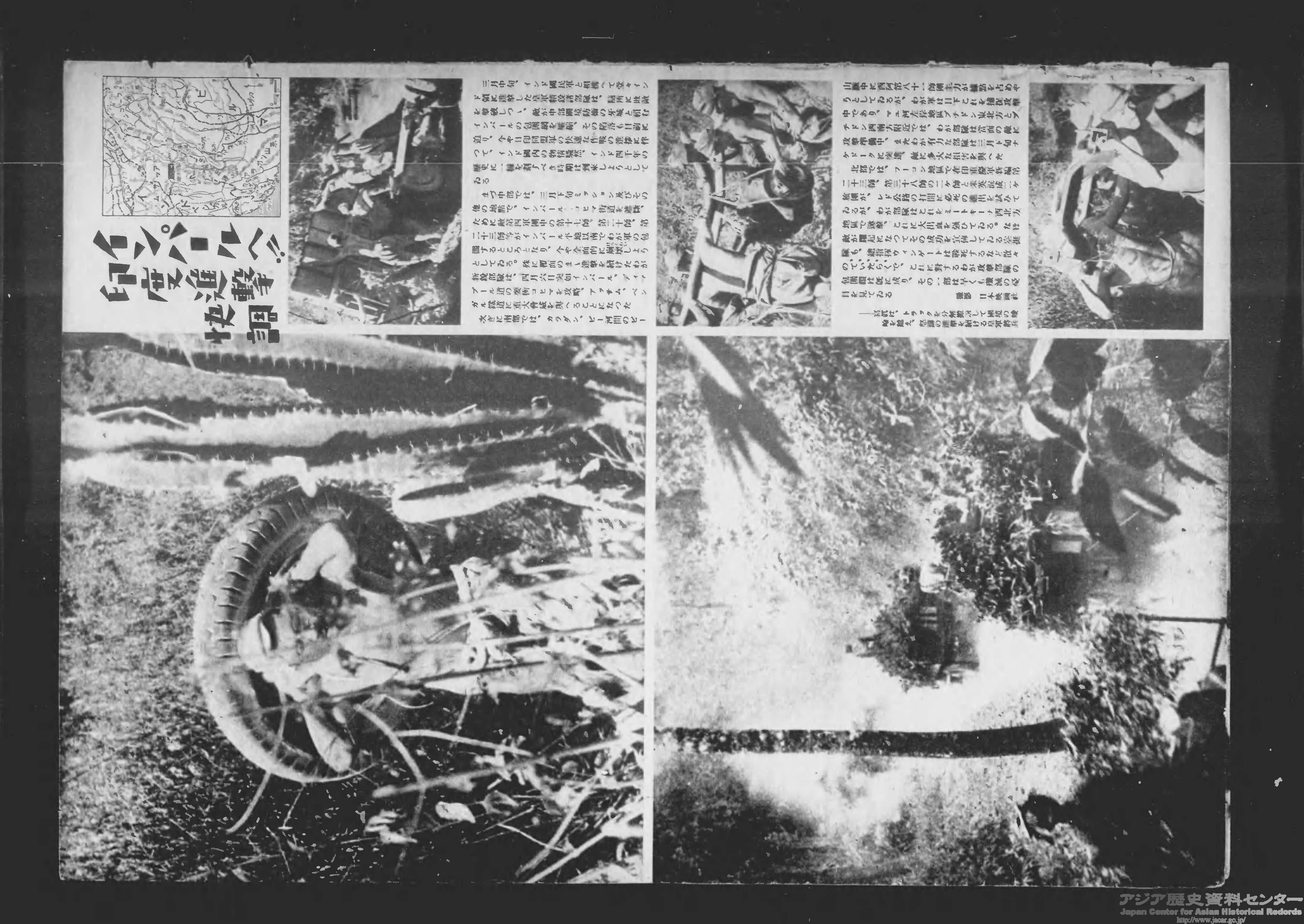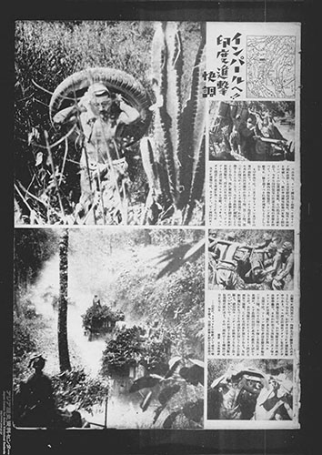 1944年4月、ビルマから英領インドの都市・インパールへ侵攻する作戦(インパール作戦)が開始され、ボース指揮下のインド国民軍も参加しました。画像のように『写真週報』でも複数の記事が掲載されましたが、日本軍が大敗しました。