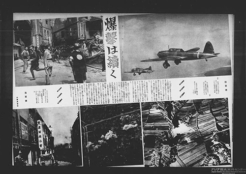 日本軍は、国民政府が拠点を移した重慶に対して爆撃を実施、『写真週報』でもこれをたびたび報じました。上の画像は1939年5月31日号。