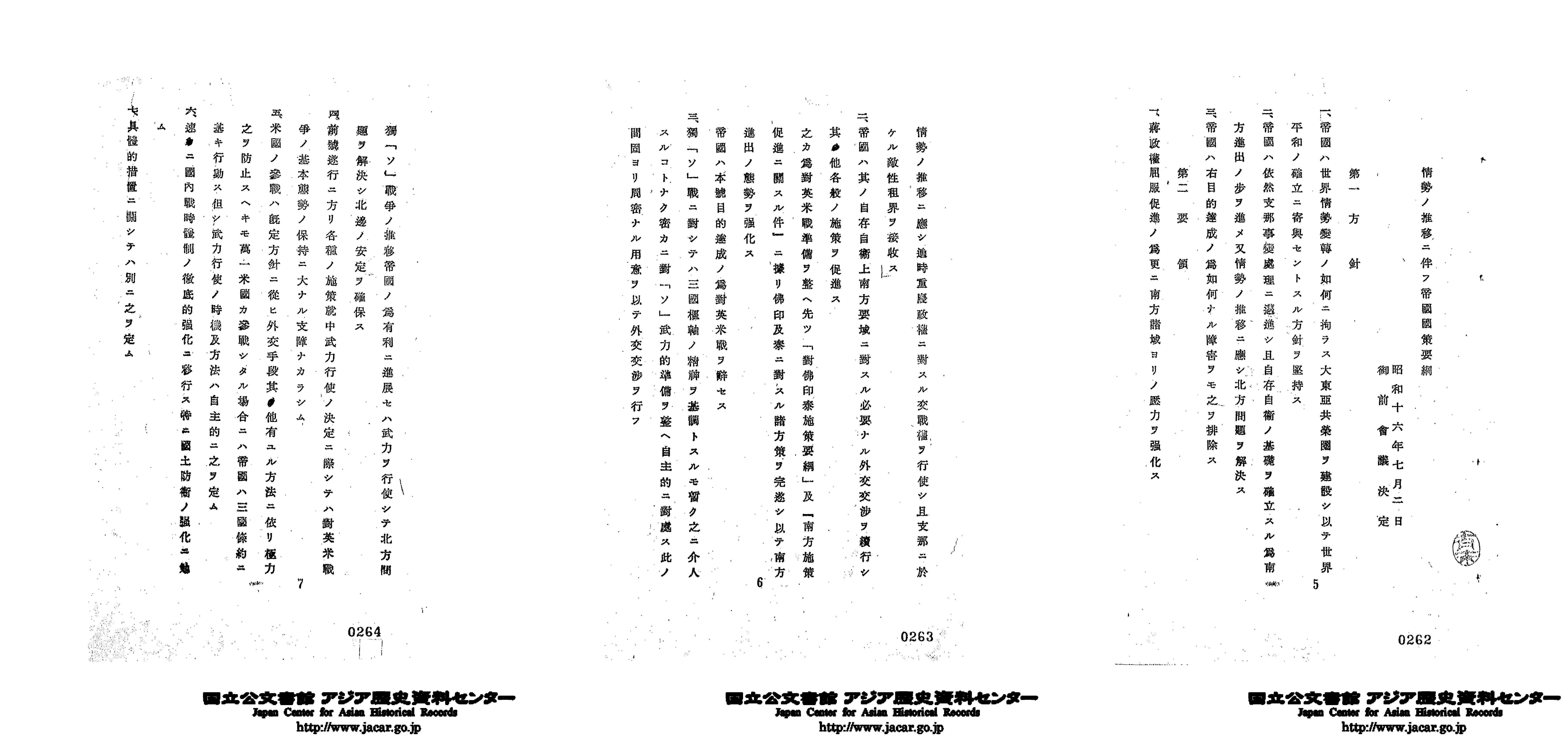 「情勢の推移に伴ふ帝国国策要綱 昭和16年7月2日」(Ref. C12120183800)1~3画像目