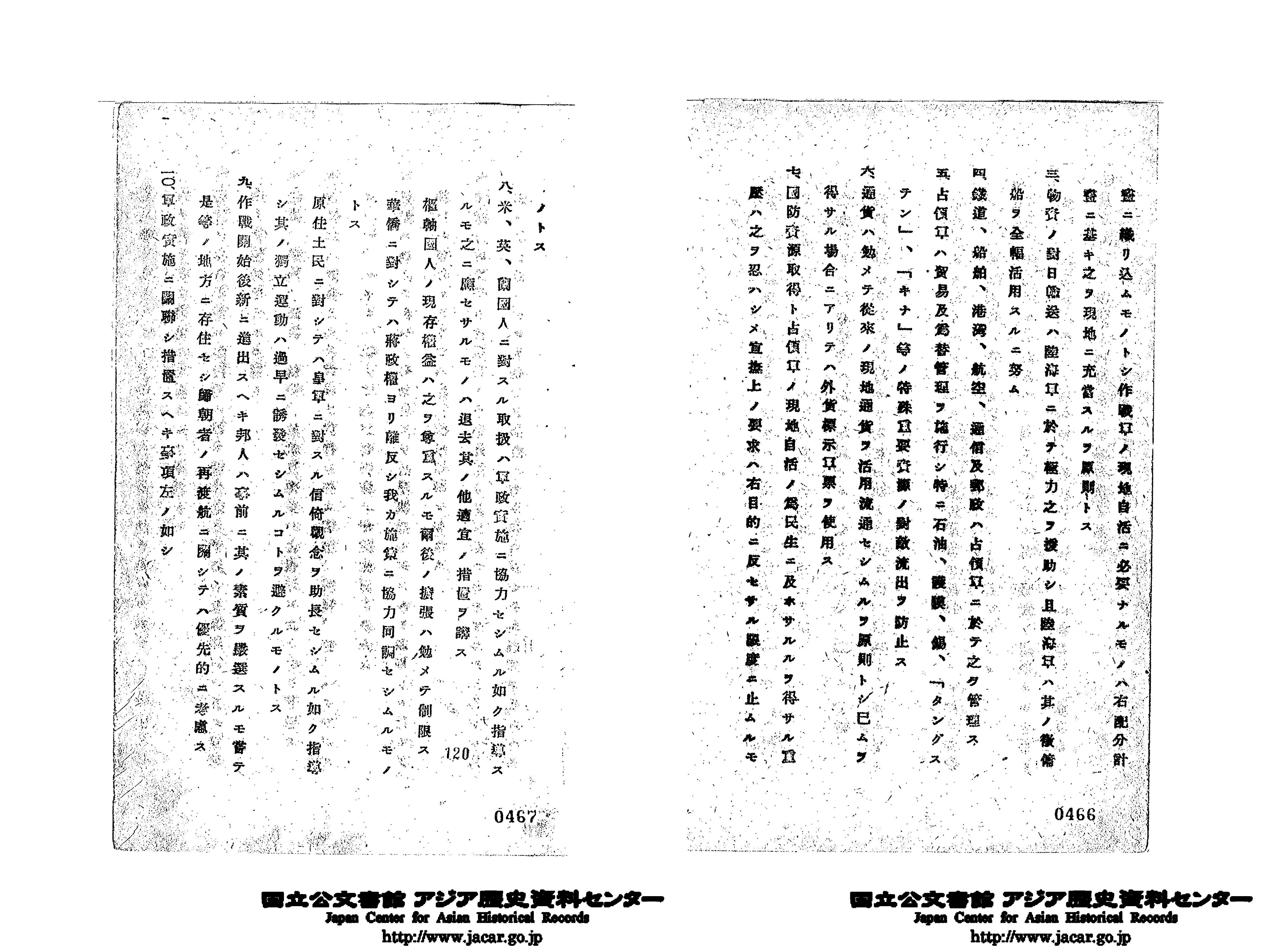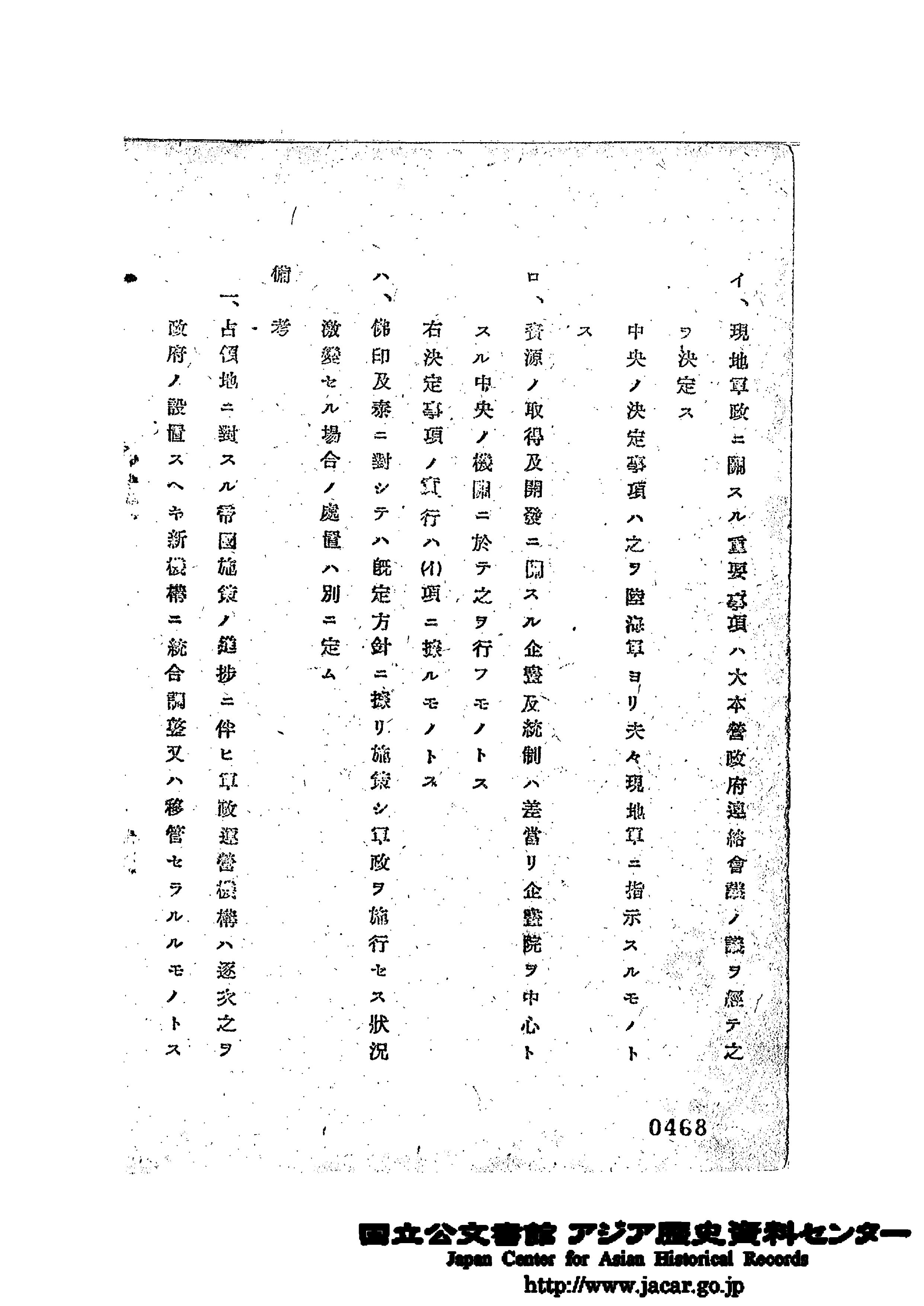 「南方占領地行政実施要領 11月20日」(Ref. C12120209400)1~5画像目