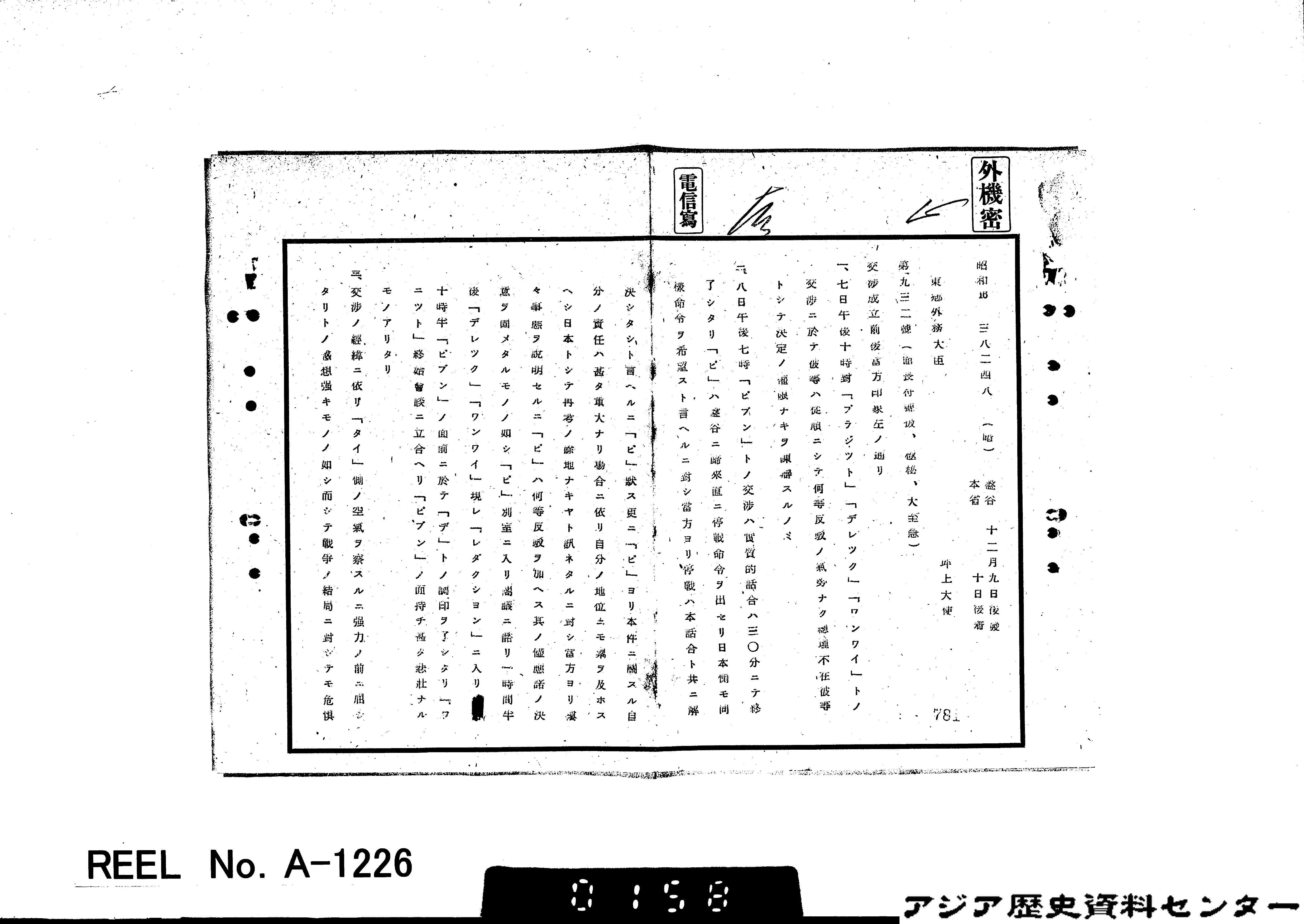 上の資料は、そのときのピブーンの様子を伝える、在タイ坪上貞二大使が外務省に宛てた電報です。