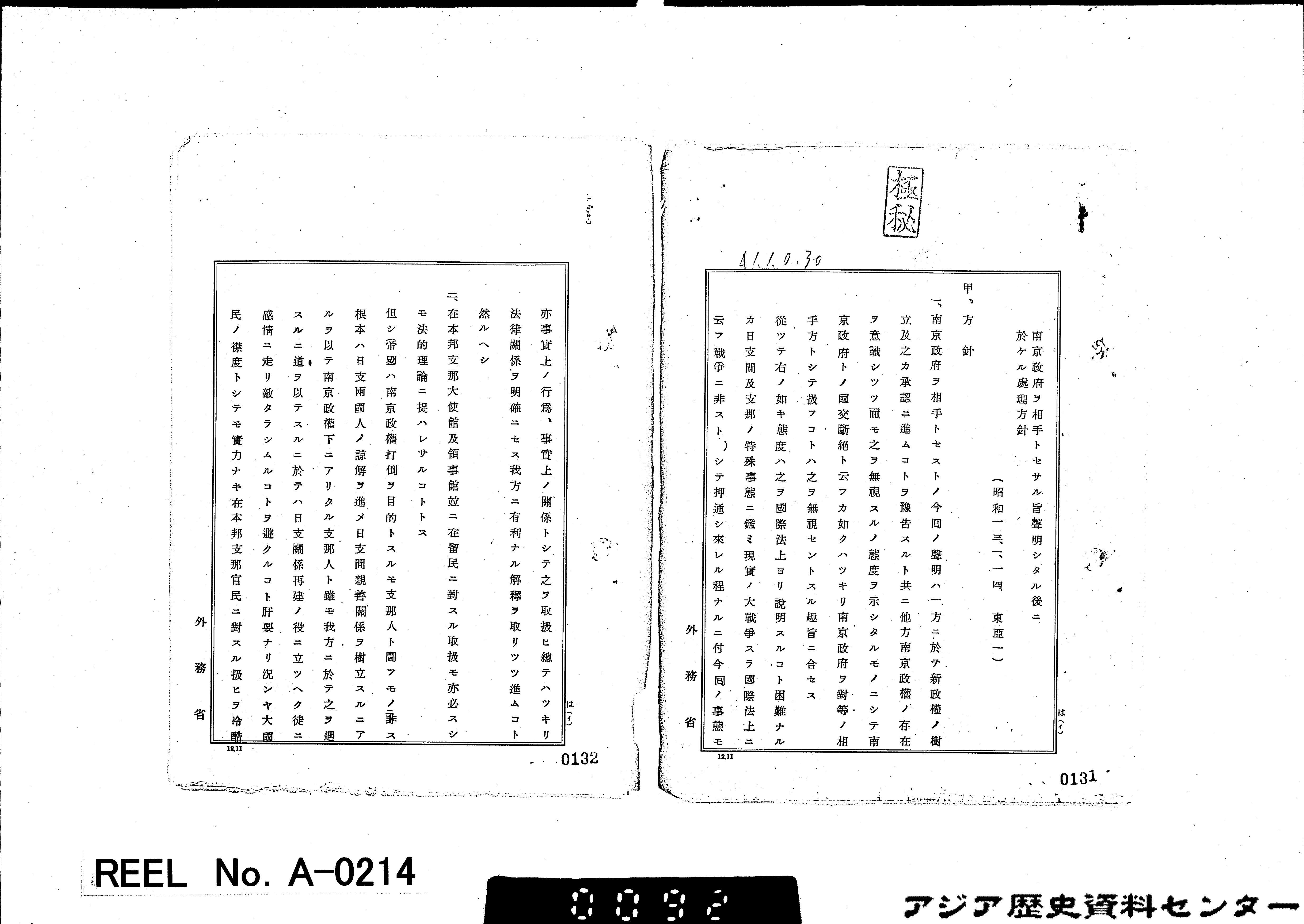 「4.重要国策関係(支那事変中)/10)帝国政府声明」(Ref. B02030523700)2画像目