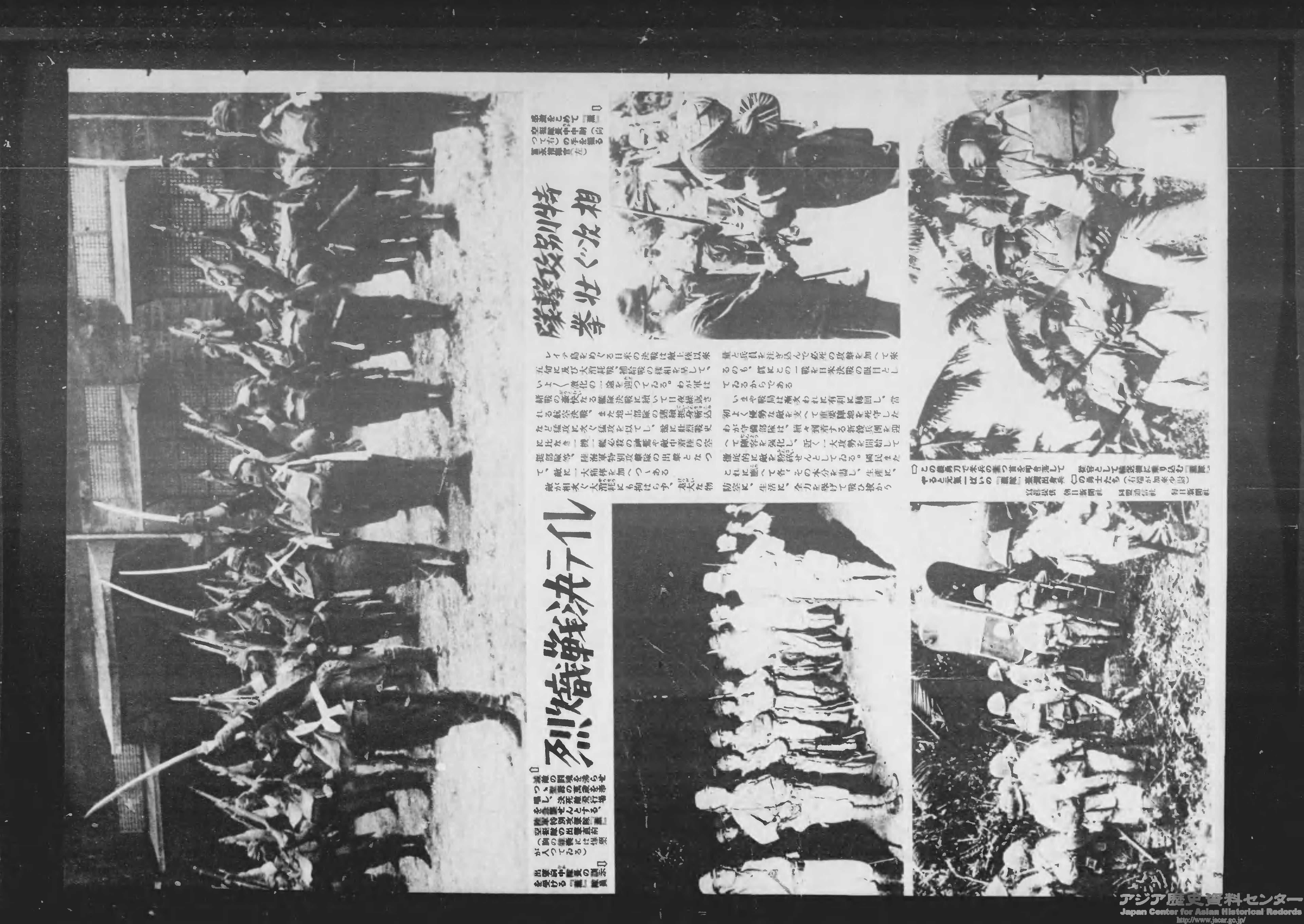 1944年10月、アメリカ軍はフィリピン奪還を目指してレイテ島に上陸、日米両軍の激戦となりました。それ以降、当センターで公開している『写真週報』の最後の号(352号、1944年12月20日)まで、レイテ島の戦いに関する情報がたびたび掲載されています。
