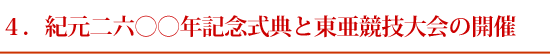 『写真週報』には、式典の準備の様子・当日の模様が掲載されています。詳しくは年表の昭和15年(1940年)11月10日「紀元2600年祝賀行事」の項目をご覧ください。式典は11月10日・11日の2日間行なわれ、5万5千人の参列者を迎えました。また、式典のほかに関連するさまざまな行事が企画されました。東亜競技大会もそのひとつです。この競技会は式典より先、昭和13年(1938年)6月6日から9日まで東京近郊で実施されることになりました。