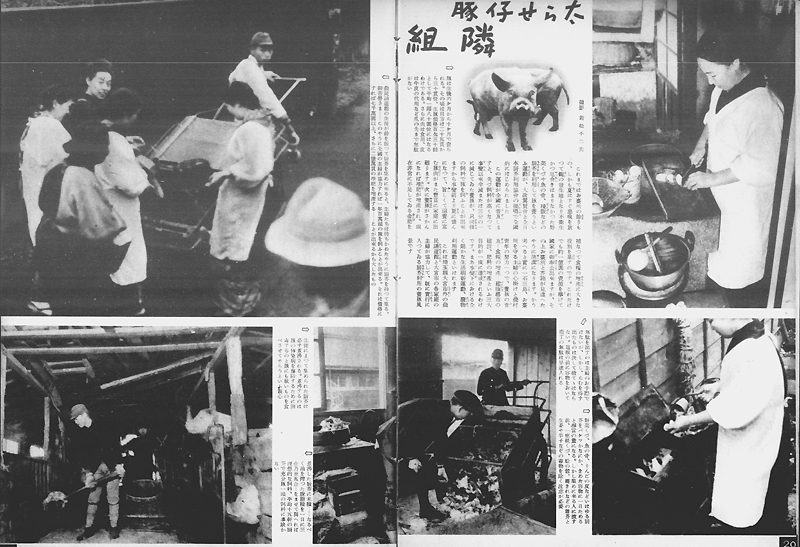 隣組は、先にみたような大政翼賛会中央本部に端を発する組織系統を通じて伝達される様々な任務を、地域において担いました。こうした任務には、上に掲げた写真にも見られる防空活動や生活物資の配給をはじめ、兵士の送迎や国債募集・貯金・金属回収の割当などがありました。その他にも戦時下において隣組を単位とする様々な活動が奨励されていたことが、以下に掲げた写真などからうかがえます。