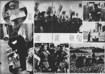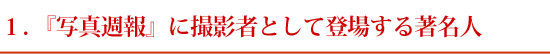 『写真週報』の創刊号には、上に掲げた表紙及び11画像目の写真の撮影者として木村伊兵衛の名前がみえます(資料1の12画像目右下)。