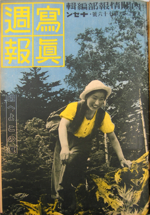 上に掲げた写真は、左から昭和14年(1939年)5月24日付の『写真週報』66号、同年9月19日付の『写真週報』74号、同じく8月2日付の『写真週報』76号の表紙です。『写真週報』には、以上に見られるように女性を被写体とし、強い彩色をほどこした表紙もしばしば見られます。