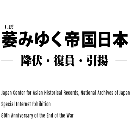 このインターネット特別展のテーマは「萎みゆく帝国日本」としました。「外地」の喪失による領土縮小だけでなく、「日本臣民」の数も大きく減少し、その活動の範囲も狭まり、「多民族国家」の記憶も敗戦とともに遠ざかっていきます。こうした現象を「萎みゆく帝国日本」という表題に託しています。