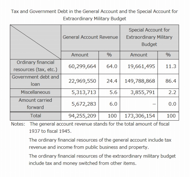 The financial resources for this budget were not taxpayer money but mostly government debt, which could be issued without consent from the Diet for the purpose of war spending.