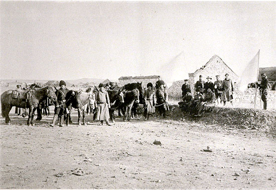 Cossack troopers of Russian Army escorting a military envoy