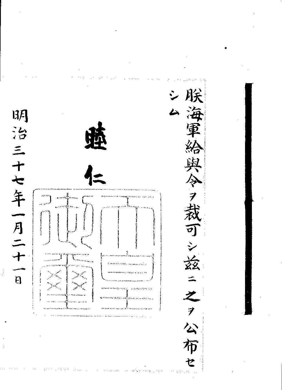 The reference is made to the materials of the Japan Center for Asian Historical Records as the "Original script signed by the Emperor in 1903: Imperial ordinance No.186 to revise Army Wage Ordinance" (Reference code: A03020573900) for the wage system of the army and the "Original script signed by the Emperor in 1904: Imperial ordinance No.6 to establish Navy personnel wage ordinance and to abolish 22 regulations besides the naval soldiers pay ordinance" (Reference code: A03020589300) for the wage system of the navy.