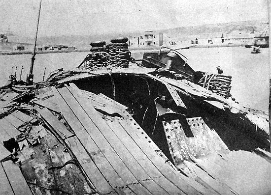 Aft upper deck of damaged Russian cruiser, "Pallada"