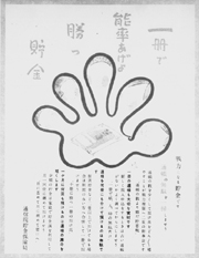 After the start of the Sino-Japanese War, citizens were encouraged to saving money to help facilitate the redemption of government bonds and loans to the military industry. Savings efforts were promoted in an organized manner by the National Savings Encouragement Bureau, which was established within the Ministry of Finance on April 18, 1938 as the bureau in charge of operations for encouraging people to save money.
