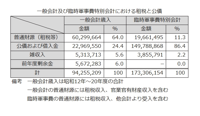 日中戦争に対応するため成立した臨時軍事費特別会計法(昭和12年9月10日法律85号)は戦時財政への移行を決定づけ、公債に依存する傾向を一層強めていきました。