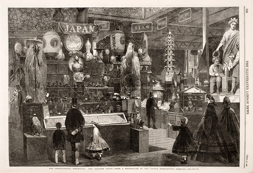 さて、1867年4月、パリ市内シャン・ド・マルスを会場に、パリ万国博覧会は開幕しました。同年10月の閉幕まで、日本は清国・シャム(現在のタイ)と共同で与えられた、会場全体の128分の1の面積の区画のうち、その半分を使用して展示を行いました。展示は大変好評で、それまで清国と混同されがちであった”日本”が独立した国家であるとの認知が普及し、1855年ロンドン万博に端を発するジャポニスム流行は更に勢い付きました。