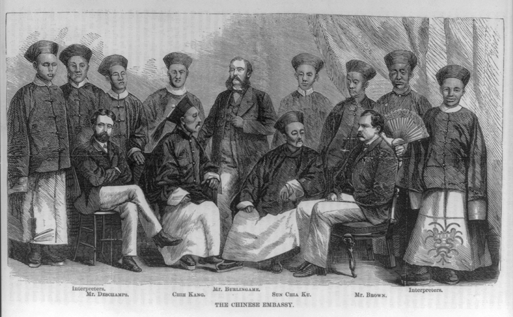 本使節団の派遣は、太平天国やアロー戦争といった内外の危機と国際情勢に迫られた結果でした。当時、1858年に締結した天津条約の10年毎の改訂交渉の時期が目前に迫っていました。総理衙門は条約相手国からの急激な門戸開放や改革の強制といった要求を回避すべく、条約締結国の本国から「協力政策」への支持をとりつけることを望んでいました。それに加え、西洋諸国は公使を北京に常駐させていたので、中国の事情を十分に了解していました。その一方で、清朝は外国に使節を派遣したことがなかったため、西洋の事情を詳しくは知らず、またそのことで不利益を被っていると痛感していたので、遣外使節の派遣を決めました。しかし、その派遣にふさわしい人選に難航してしまいました。そうした時期に開かれたバーリンゲームの任期満了による帰国の送別会をきっかけにして、清朝は彼を欽差大臣(特命全権大使)に任命しました。