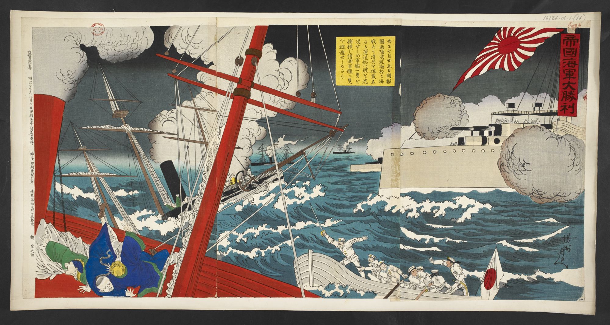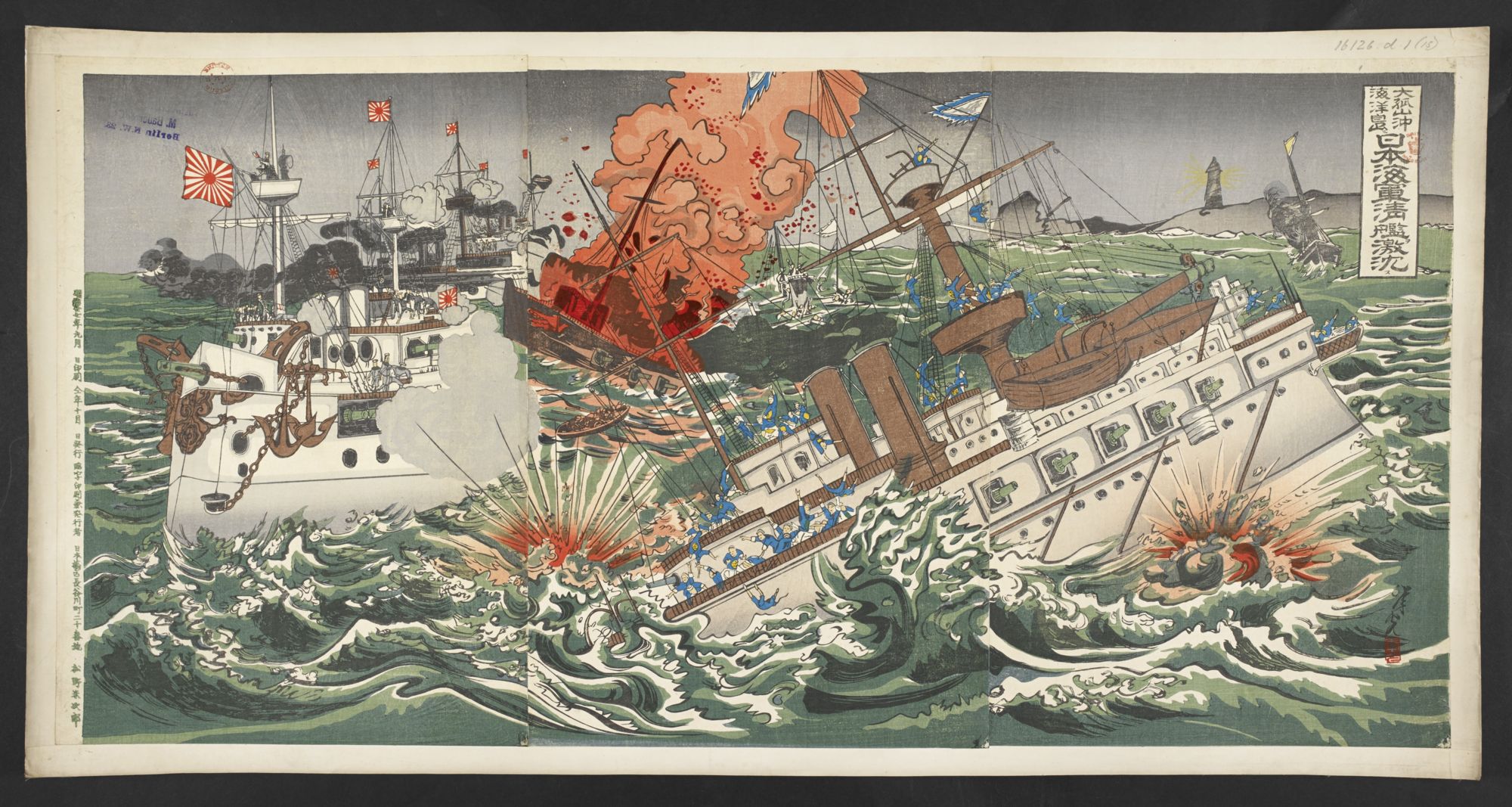 - タイトル: 大孤山沖海戦之図 日本海軍誉清国海軍敗滅